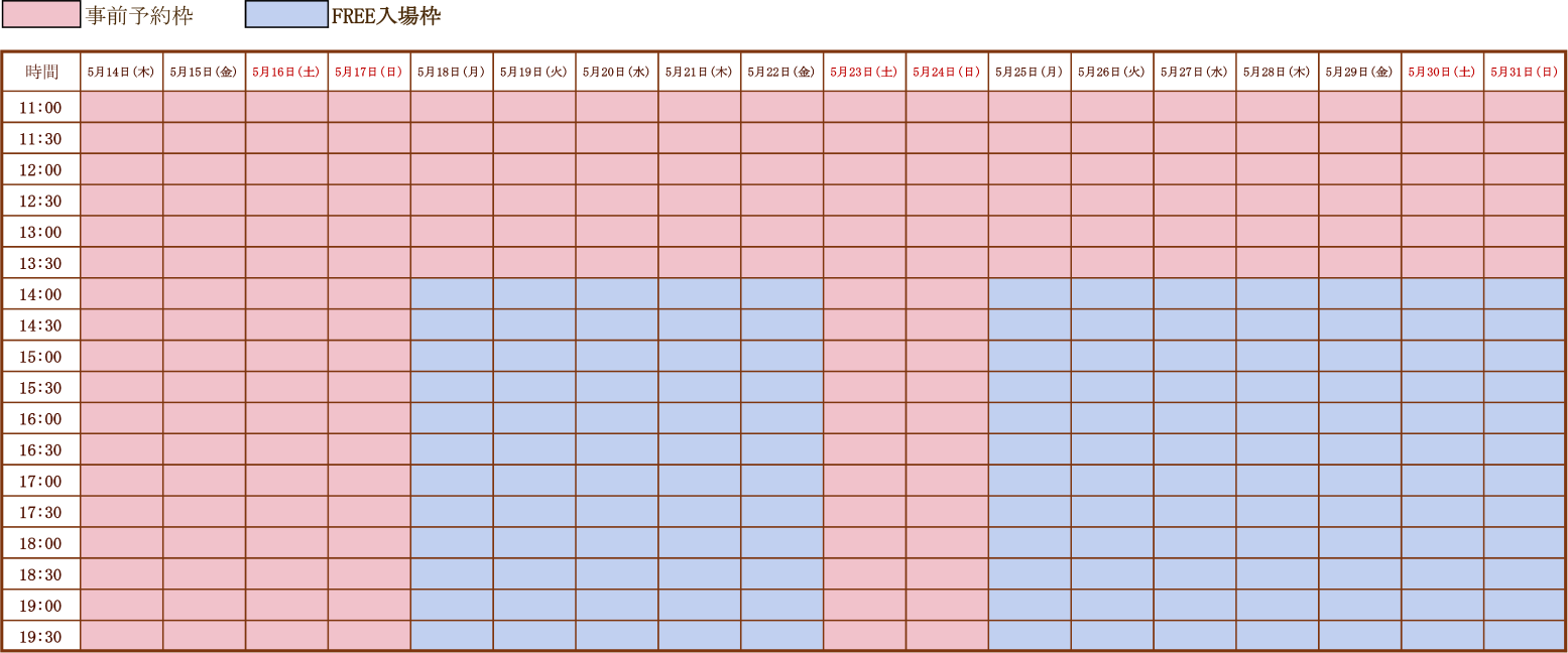 ※天災・疫病の蔓延・不慮の事故などやむを得ない事情により、休業や営業時間が変更となった場合、該当の入場枠は無効となります(他の日付の代替【入場整理券画面】の発行はいたしません)。なお、その場合の来場にかかわる費用(交通費・宿泊費など)はいかなる理由におきましても補償いたしかねます。