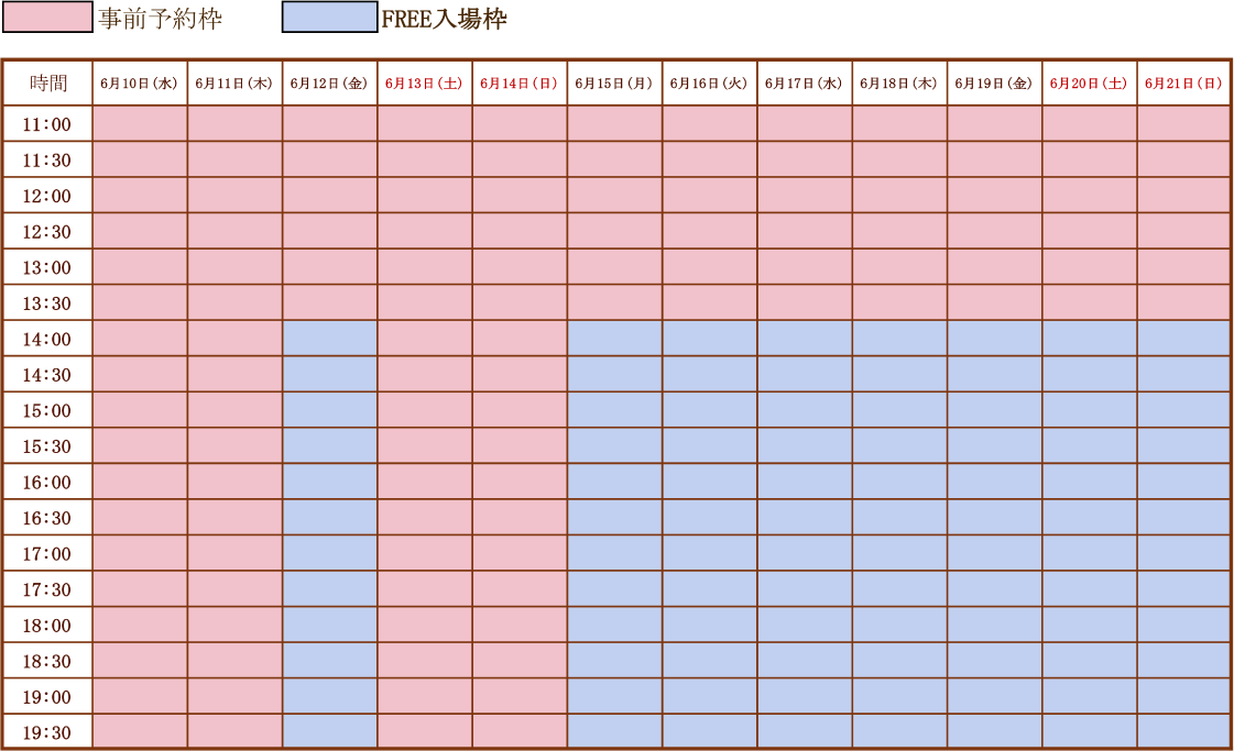 (やむを得ずご予約いただいたお日にちに来られない場合はキャンセル処理等なく無効となります)